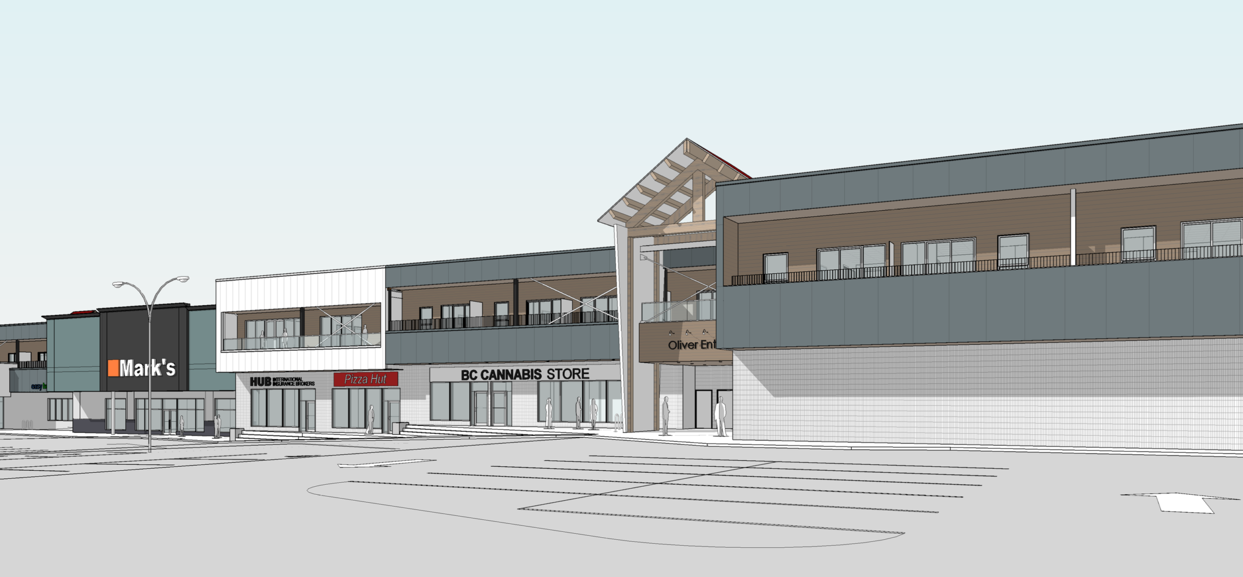 Converting the existing mall’s second floor into an 80-unit residential building.